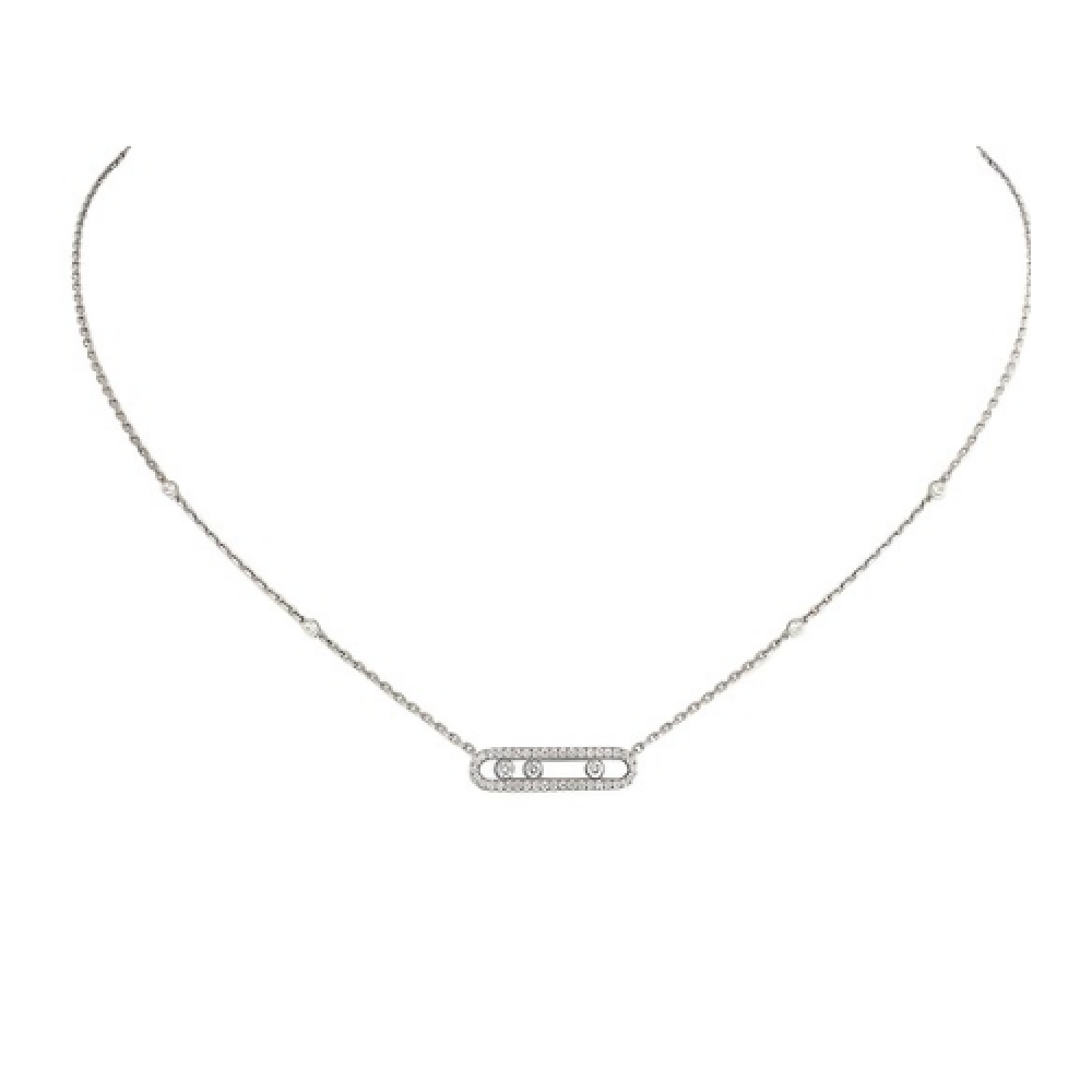 تألقي بلمسة من الأناقة العصرية والبريق مع هذه القلادة الآسرة، المستوحاة من التصميم الأيقوني لدار ميسيكا. تُعد هذه القلادة تجسيدًا للرقة والجمال، حيث تجمع بين الرقة والجرأة في تصميم واحد.