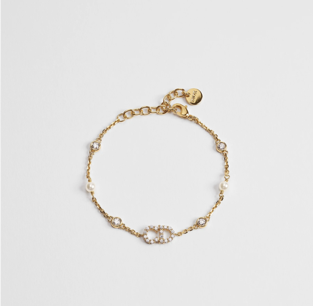 في وسط الأسوارة، يتوسطها شعار **CD** الشهير لدار ديور و تتزين بحبات لؤلؤ، والذي يعكس هوية العلامة الفاخرة ويضفي عليها طابعًا عصريًا وفريدًا. هذا الشعار ليس مجرد رمز، بل هو تعبير عن الإبداع والأناقة التي تميز دار ديور.
