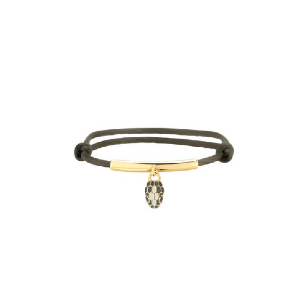 سوار «سيربنتي فورإيفر» من النسيج بلون ميميتيك جايد الأخضر. قطعة معدنية أنبوبية من النحاس المطلي بالذهب وتعليقة آسرة