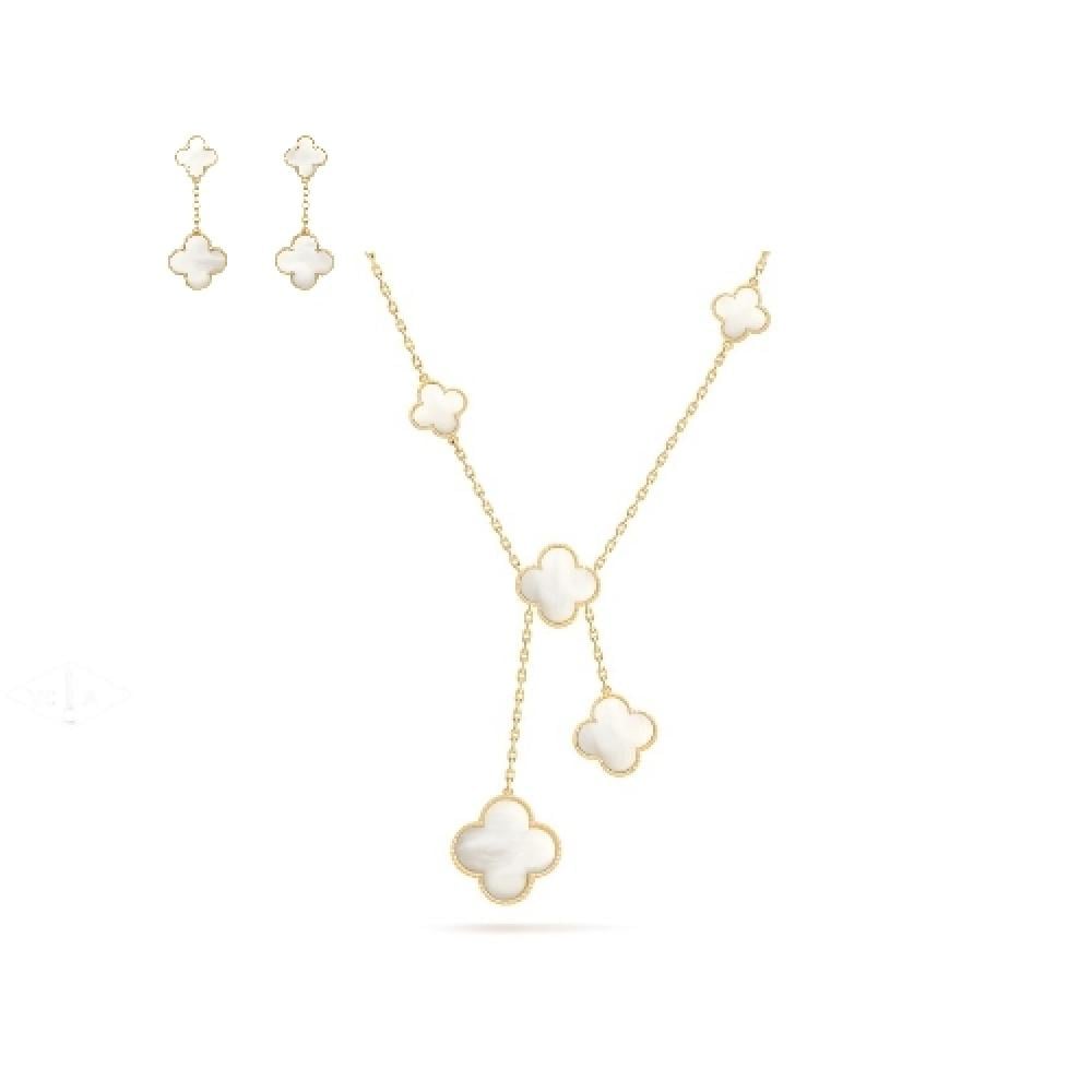 طقم مجوهرات مطلي بالذهب بتصميم Mother of peral Alhambra